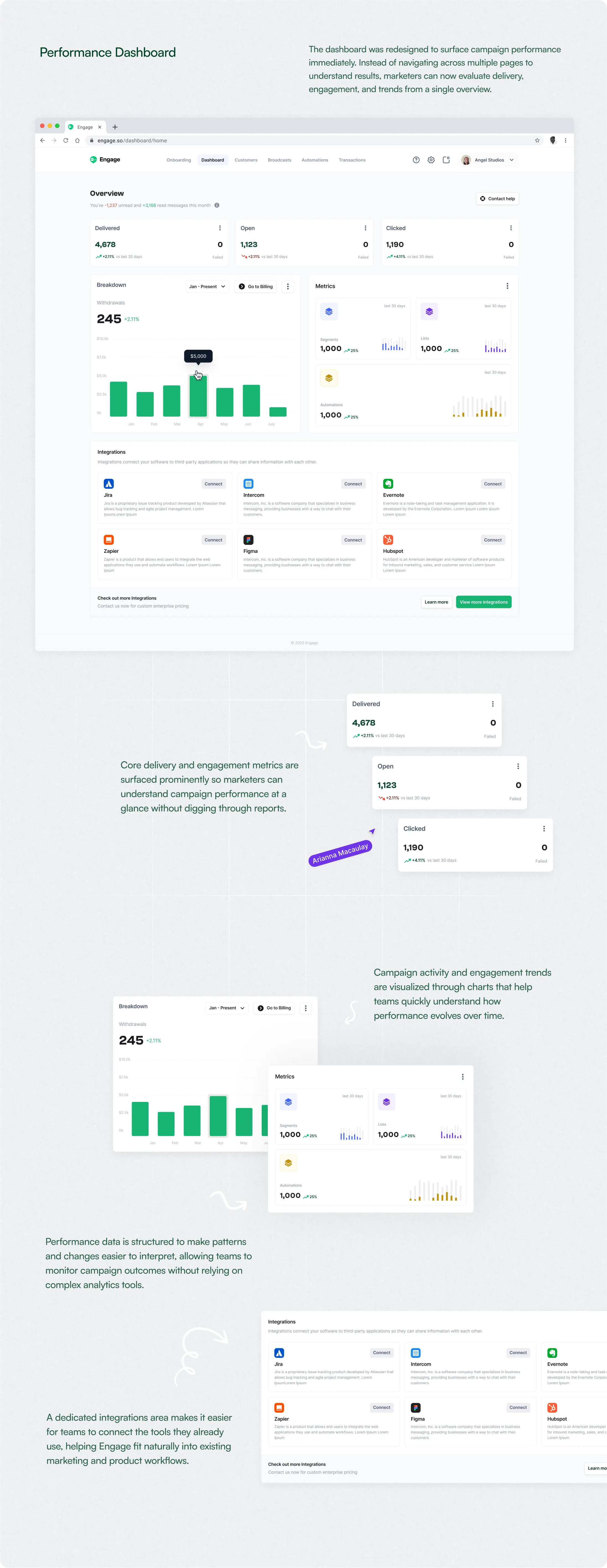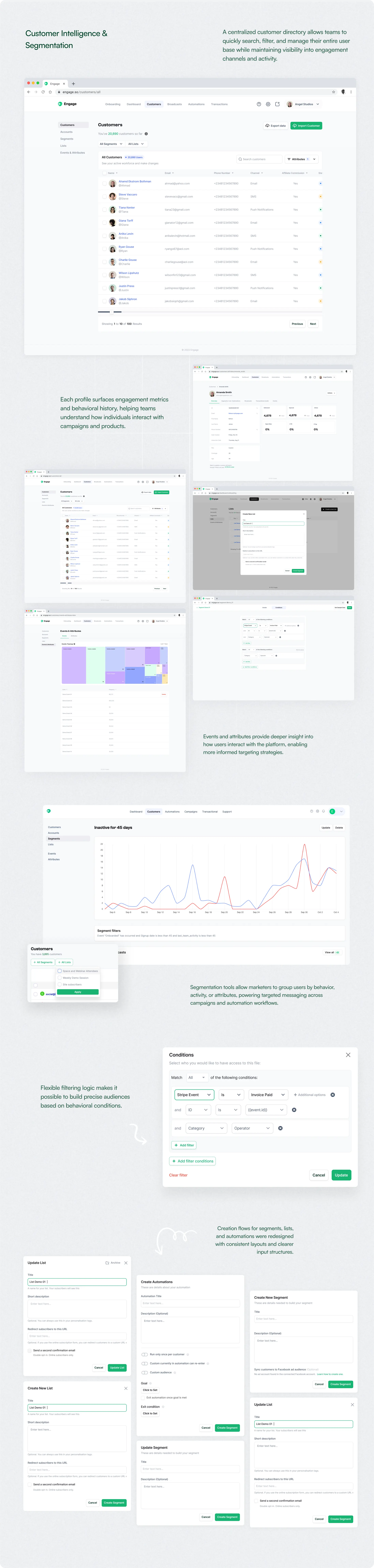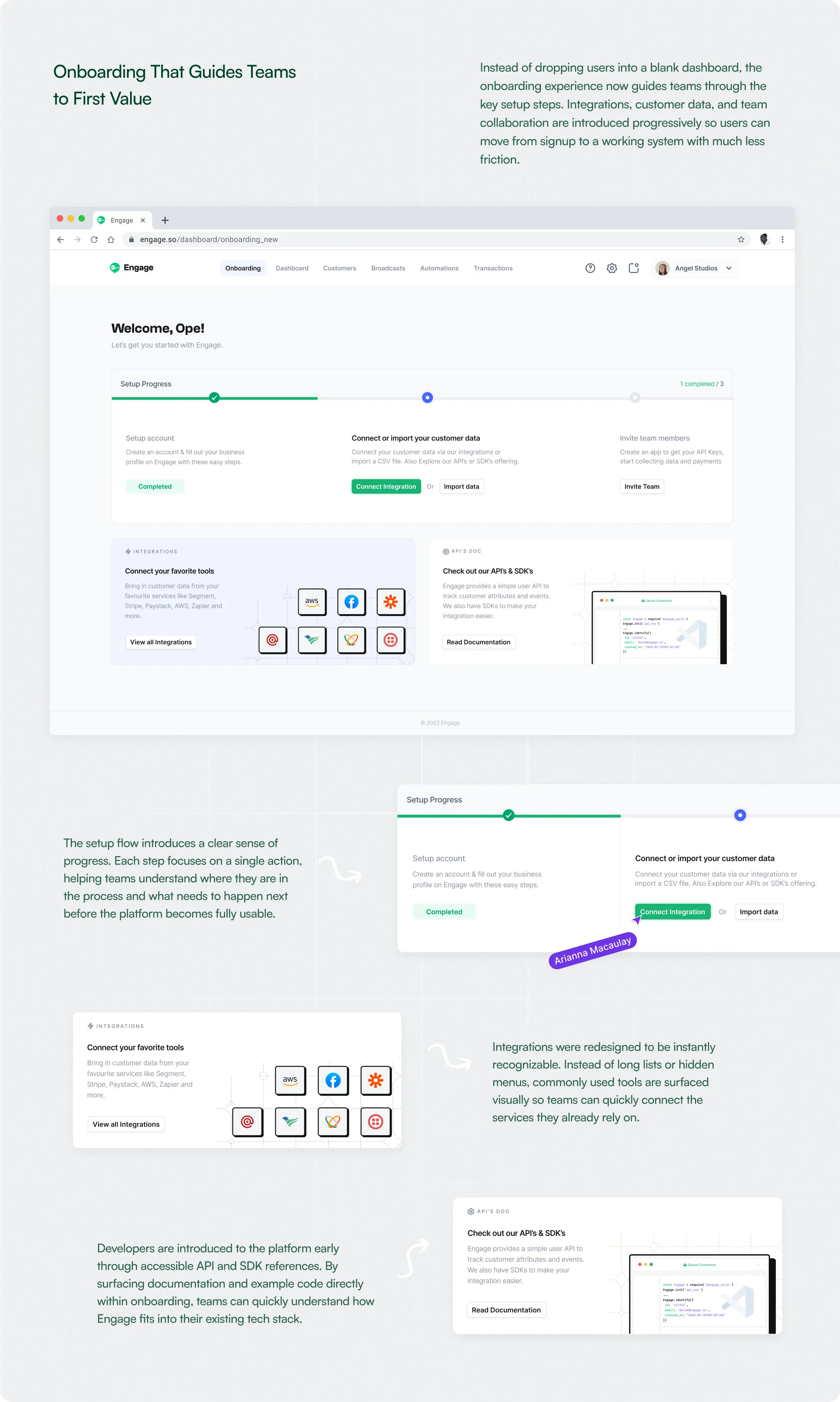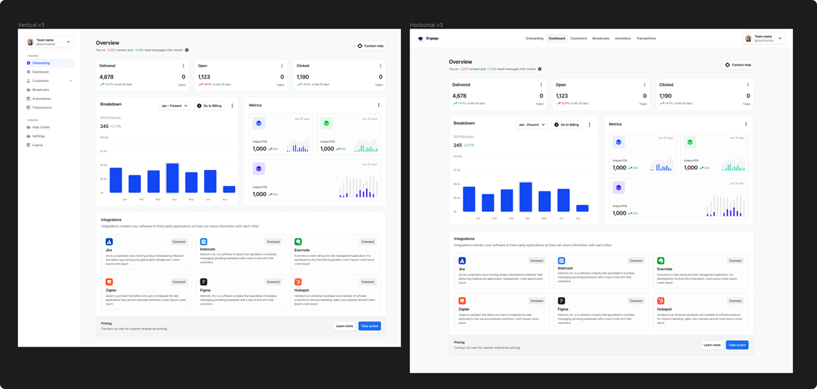 I led the design of the Engage B2B dashboard experience, working closely with the Product Manager and engineering team to rethink the platform’s core interaction patterns.