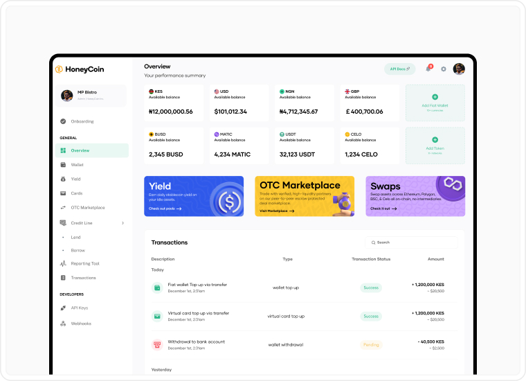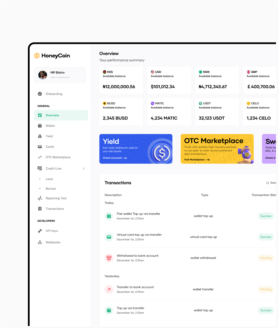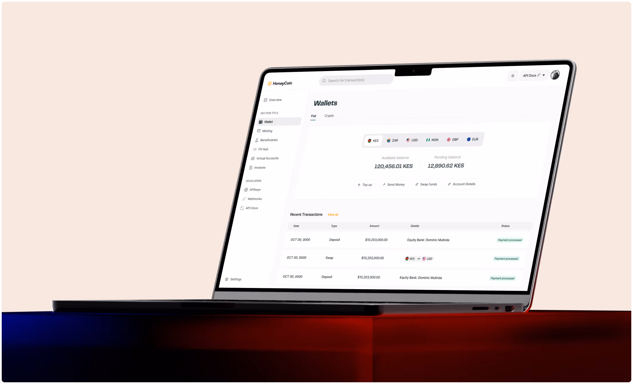 Honeycoin is a global payment orchestration platform enabling PSPs, banks, financial institutions, and IMTOs to move money in real time across 45+ markets.
